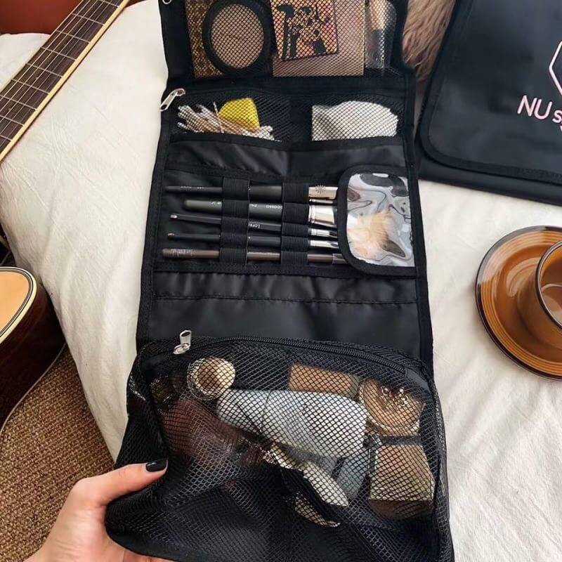 能把所有要外帶的彩妝護膚品都裝上,粘上後是一個可以提的包包時尚又好看.